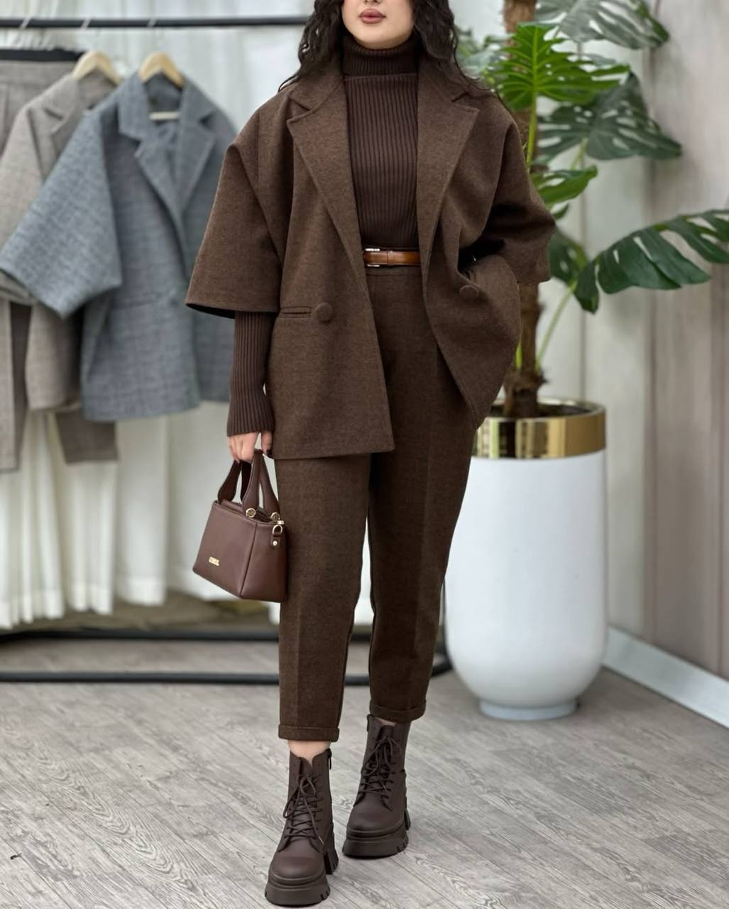 - کت کرم شلوار قهوهای 1