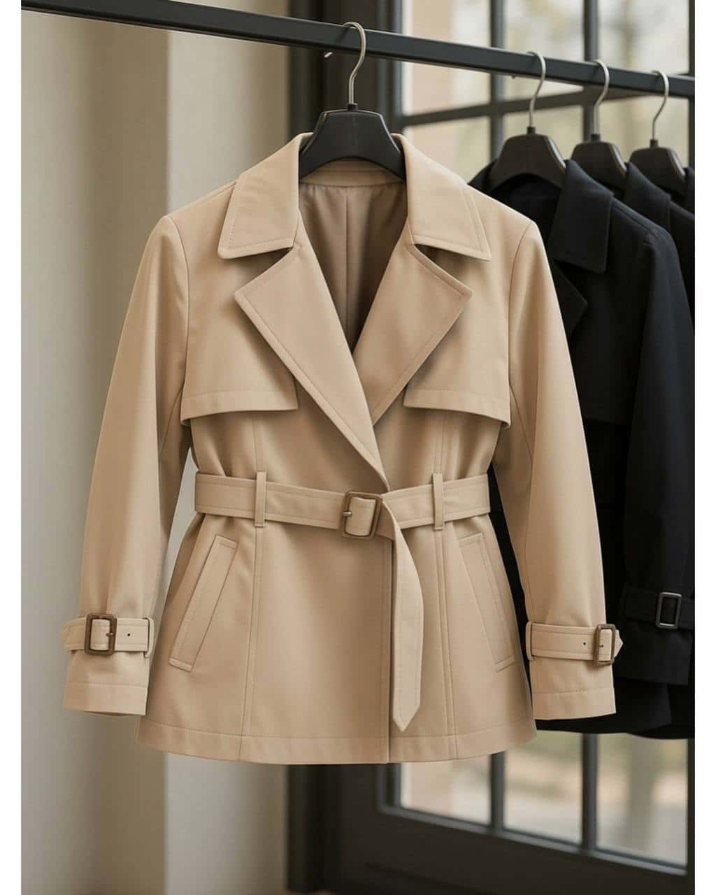 🧥✨ اگه دنبال یه بارونی هستی که هم استایل بده، هم جلوی بارونهای بیهوا کم نیاره… معرفی میکنم: بارونی زنانه کوتاه مانلی!
