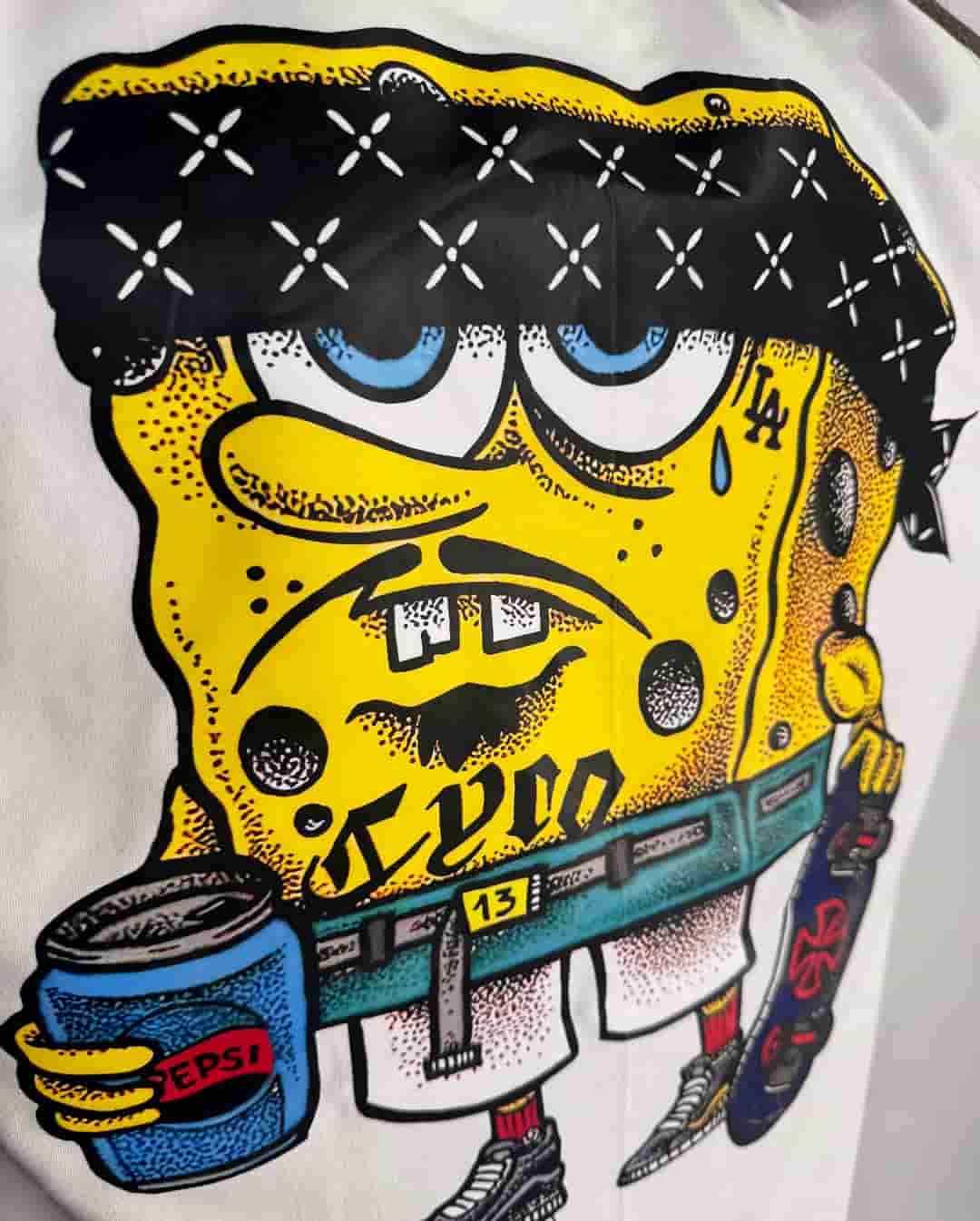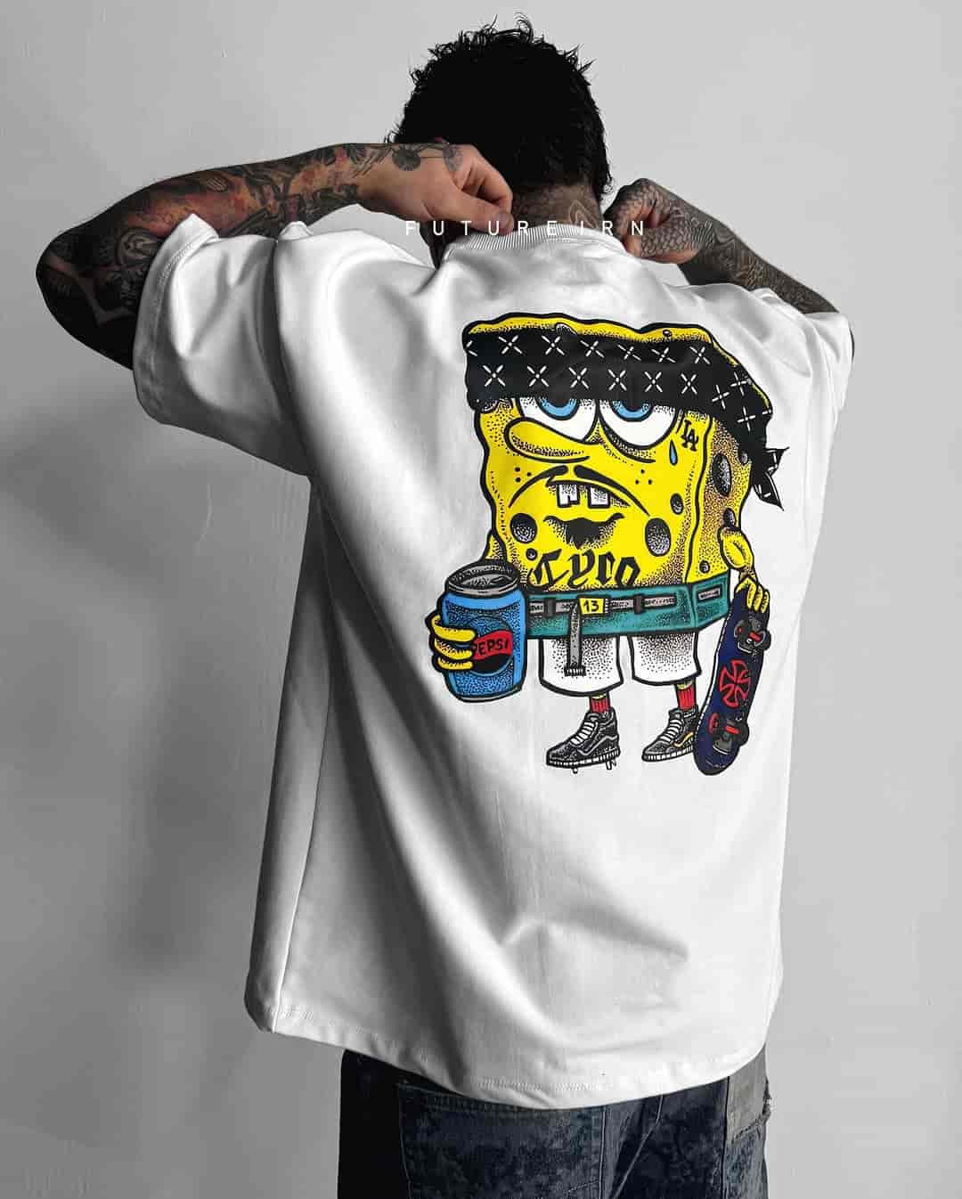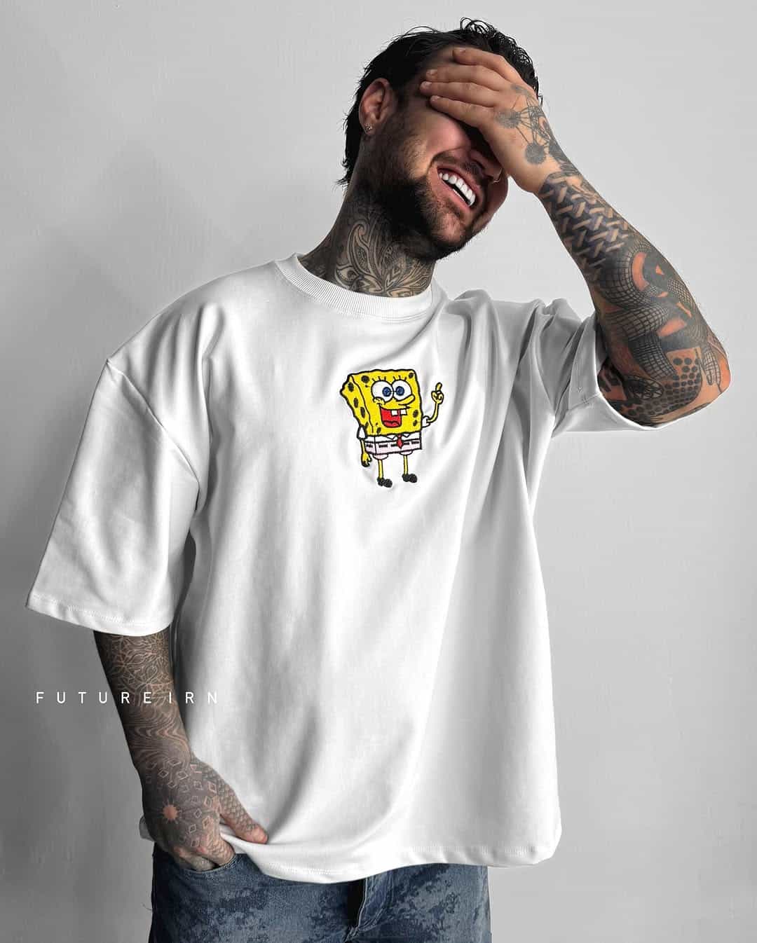 🧽 تیشرت دورس سفید مردانه طرح باب اسفنجی گنگ – برای استایلای خاص و متفاوت! 🔱