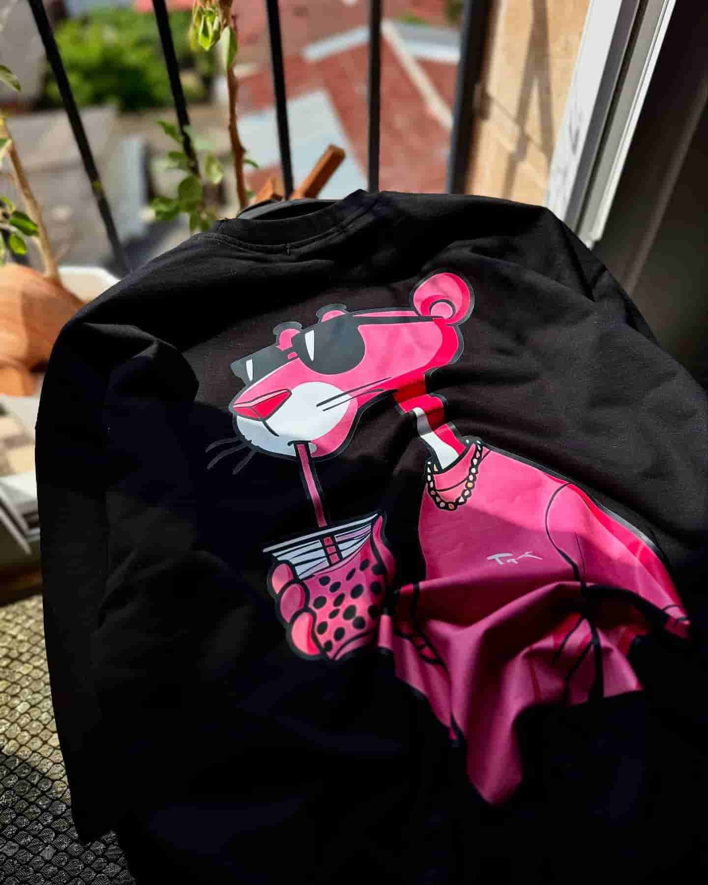 💥 پلنگ صورتی برگشته… اما اینبار با استایل و تیشرت مردانه طرح پلنگ صورتی!