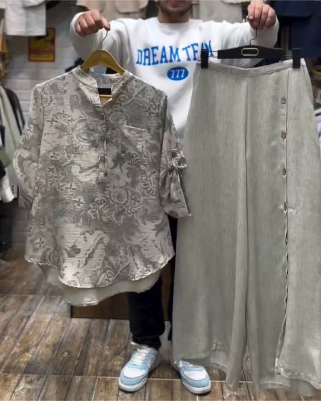 ست تابستانه شومیز شلوار نیلو فقط یه لباس نیست، یه حس خوبه. هم با صندل خوشگل میشه، هم با کتونی اسپرت. برای مهمونی عصرونه، خرید، یا حتی یه قرار دوستانه توی کافه، گزینهی ایدهآله. 😍