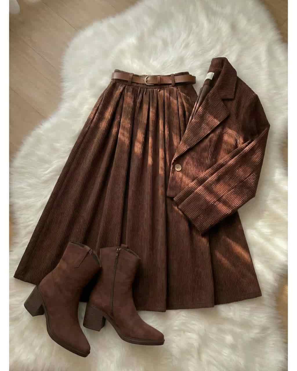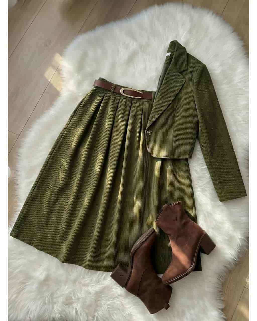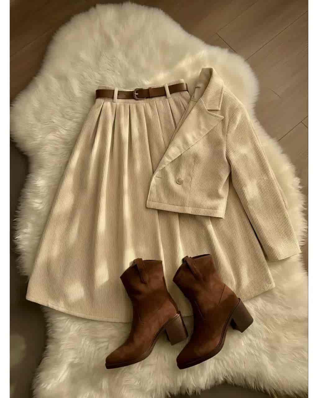 طراحی کت کوتاه در کنار دامن بلند، یه استایل ظریف و دخترونه می‌سازه که هم چشم‌گیره هم فوق‌العاده خوش‌فرم 💃🌸