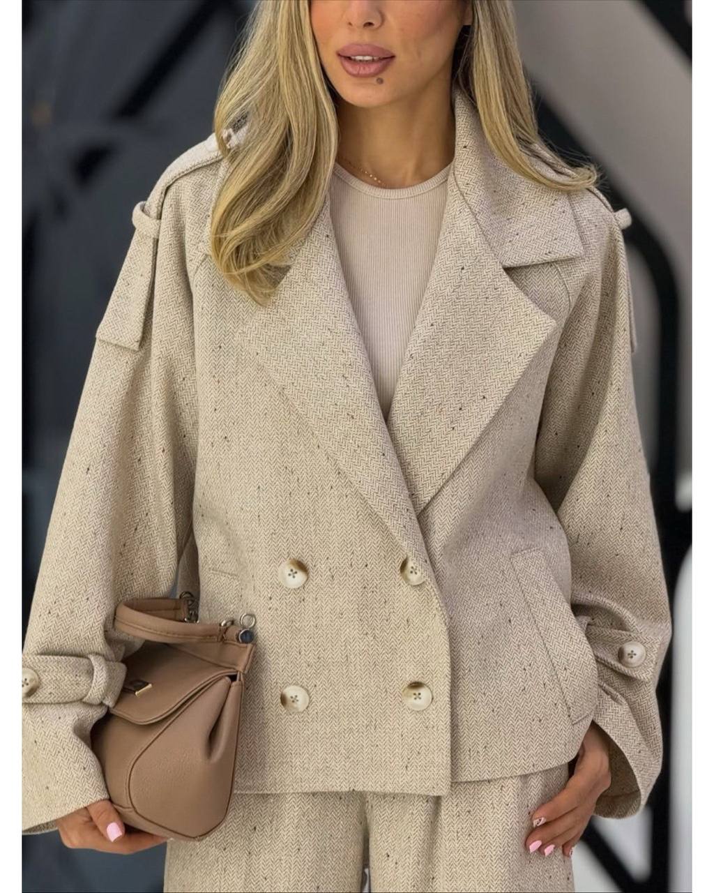 🍁 قد پالتو: حدود ۶۵ سانتیمتر – کوتاه و فیت روی بدن