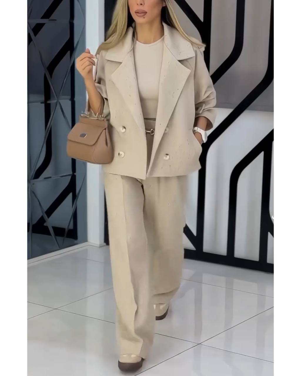 با «بست زنانه پالتو کتی شلوار بگ بانو» میتونی هم برای قرارای رسمی بدرخشی، هم برای یه روز خاص با دوستان ✨