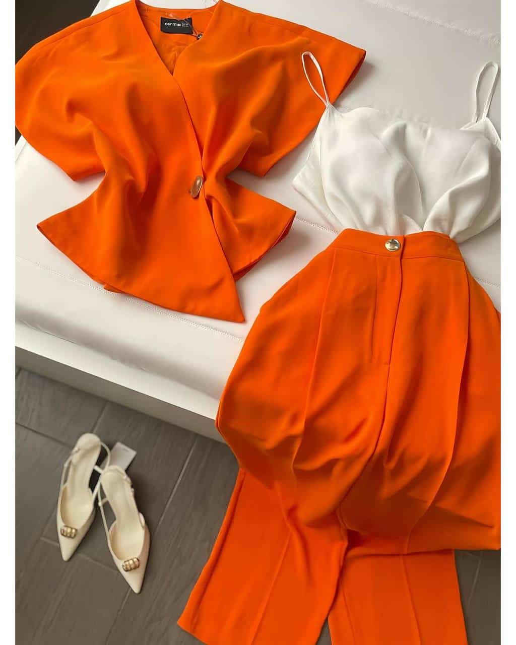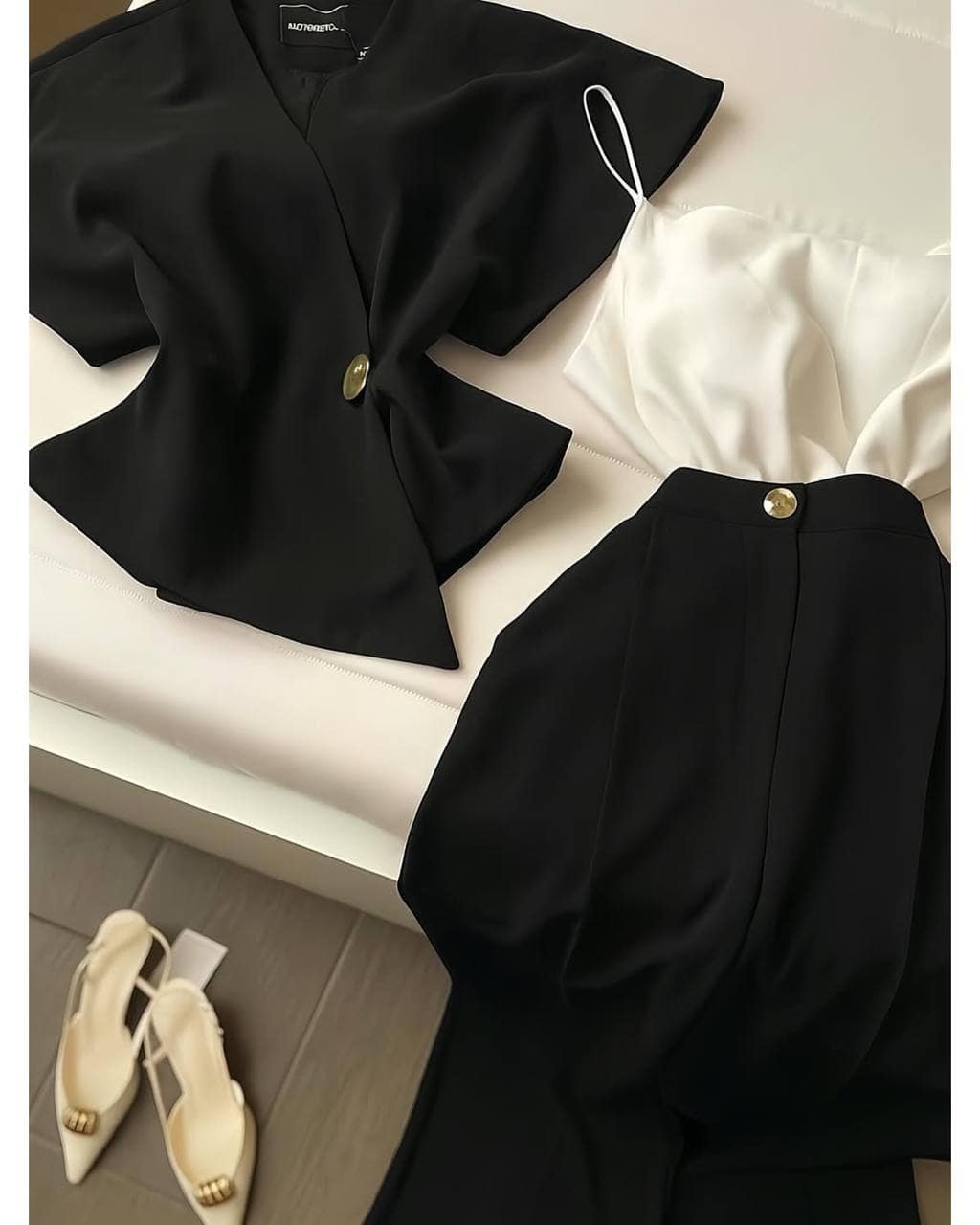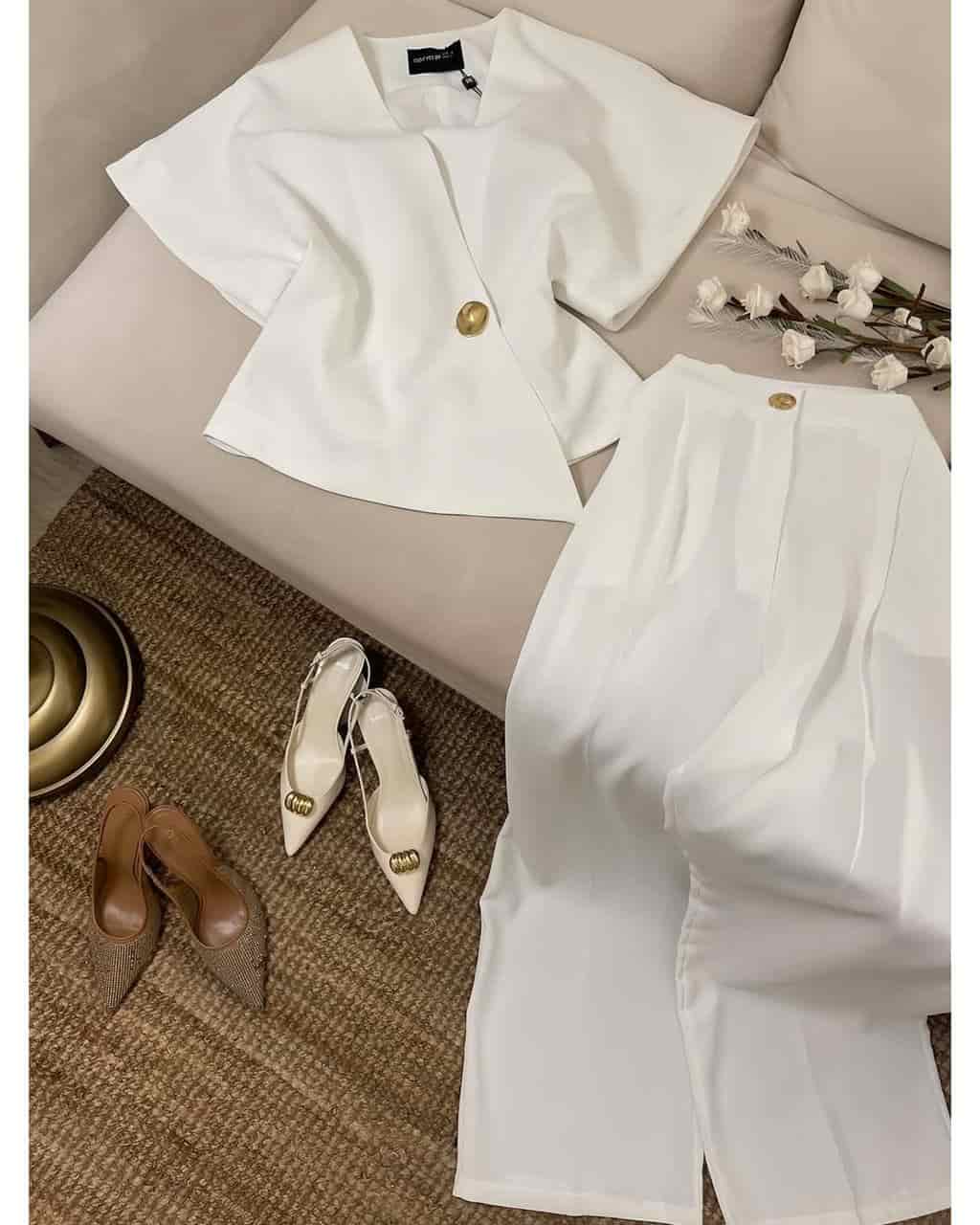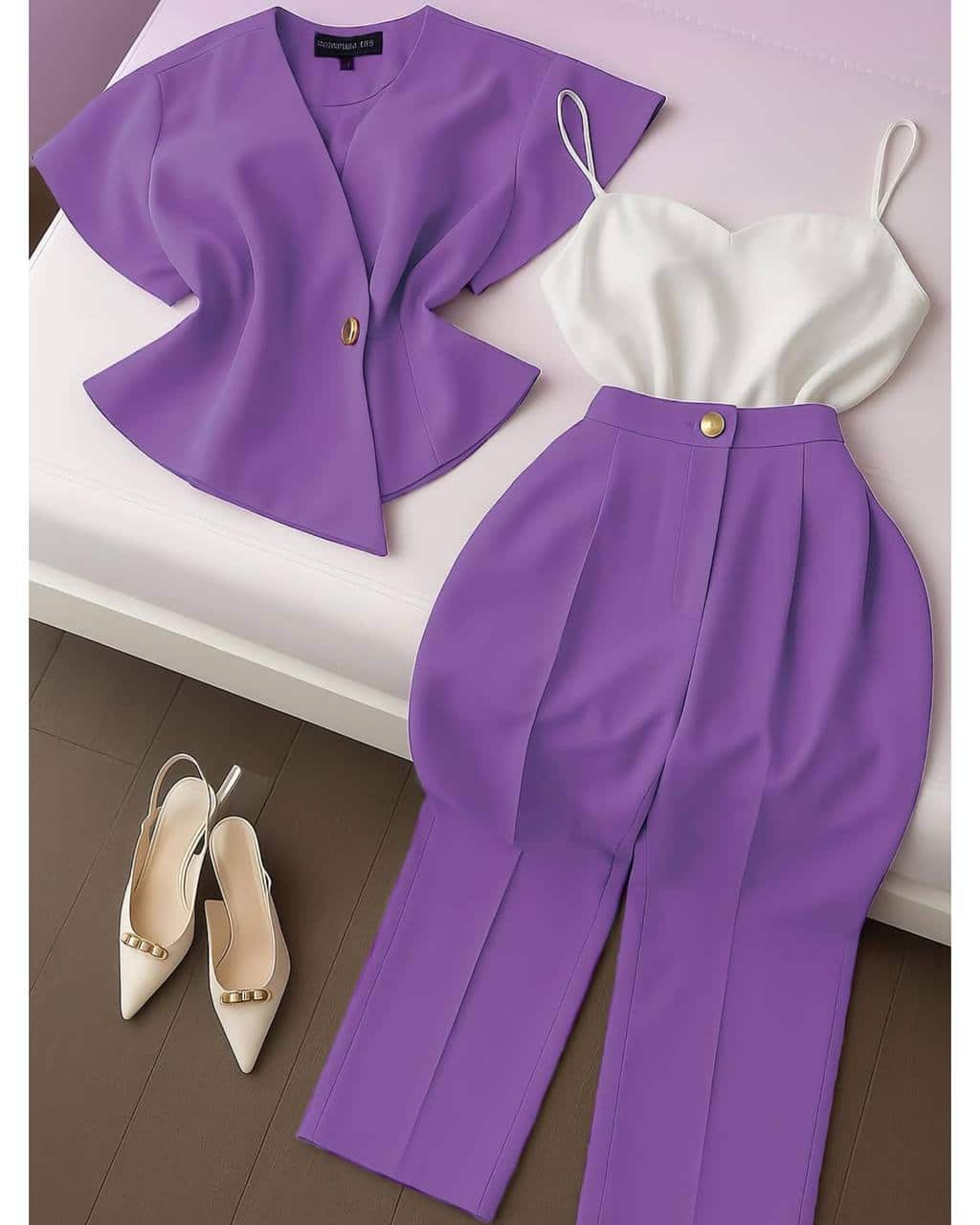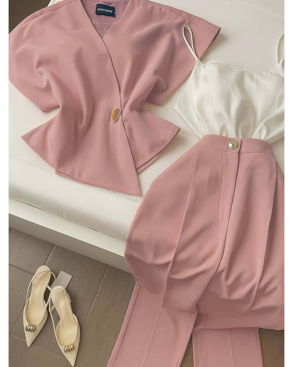 🧥 شلوار خوش‌فرم با قد بلند (حدود ۱۰۶)، کت شیک و کوتاه (حدود ۶۰)، کراپ خوش‌دوختی که می‌گه: “من خاصم!”