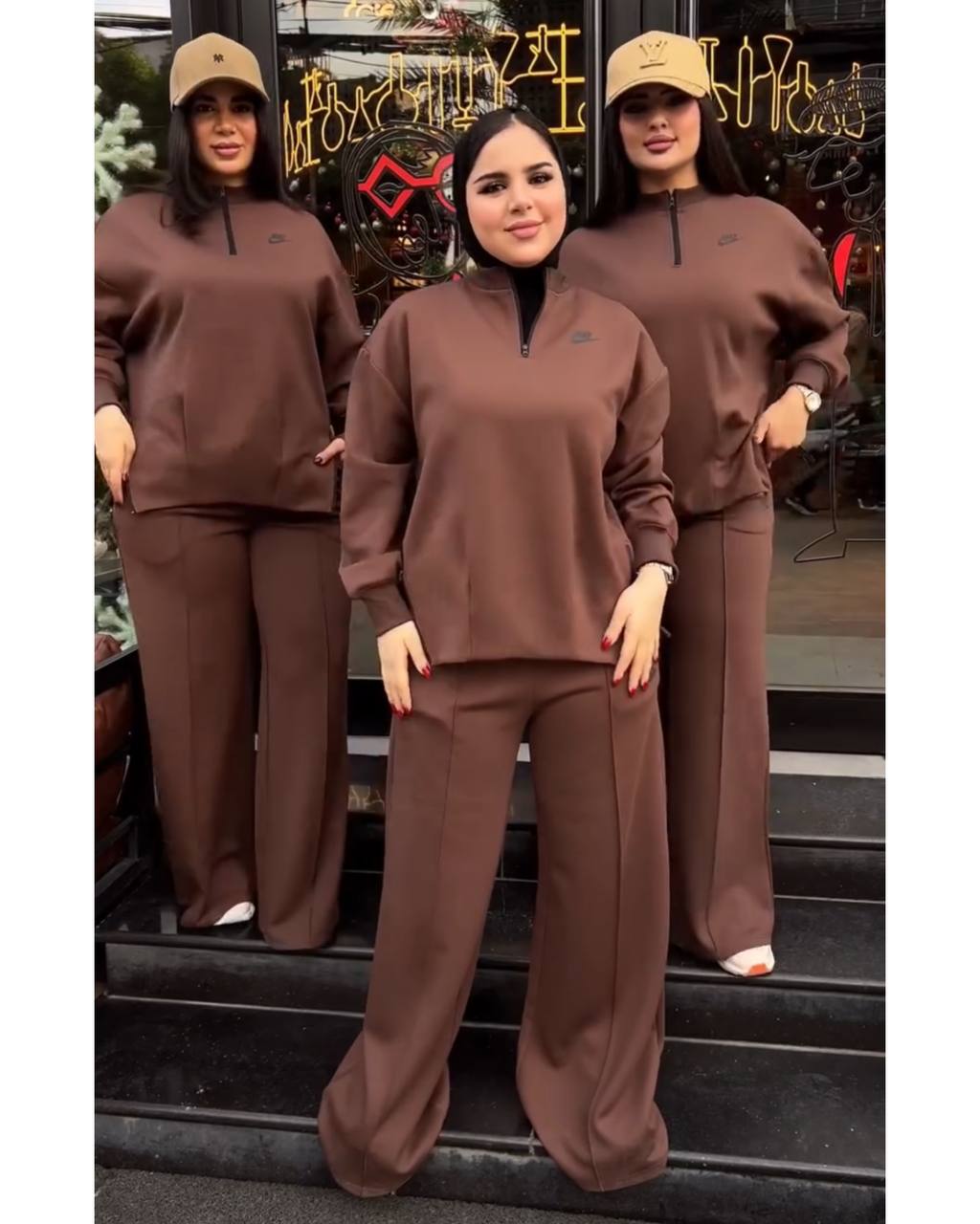 🍂 ست سویشرت نیم زیپ شلوار بگ نیکا 🍂