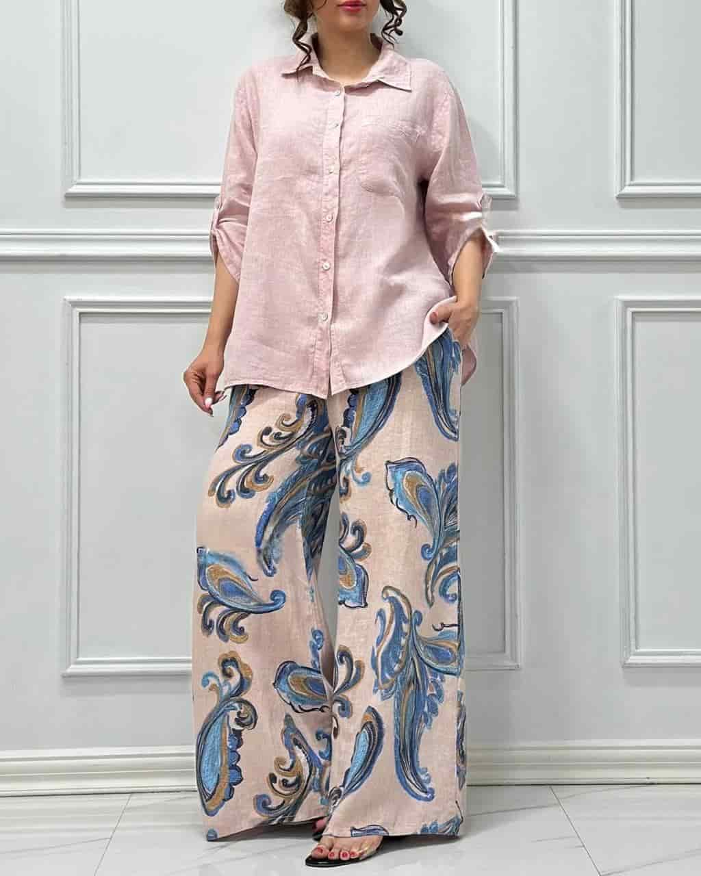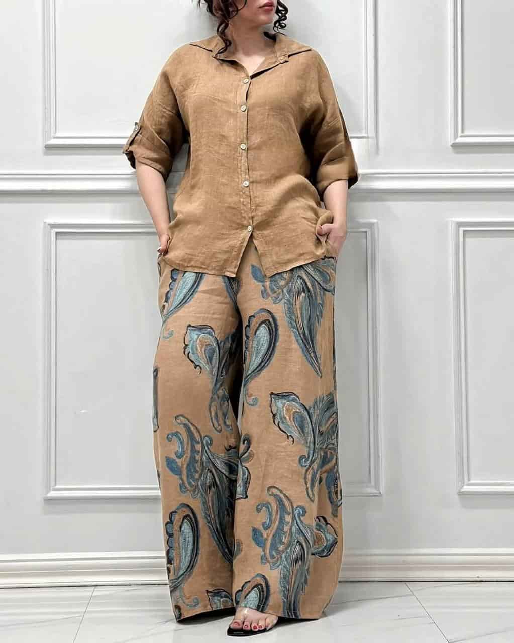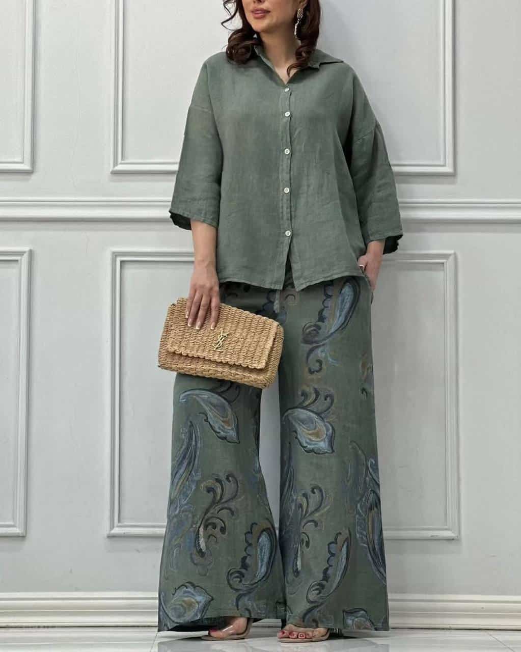 این ست جذاب با پارچهی شانتون خنک و سبک، هم برای مهمونی عالیه، هم برای بیرون رفتن روزمره 👗👖