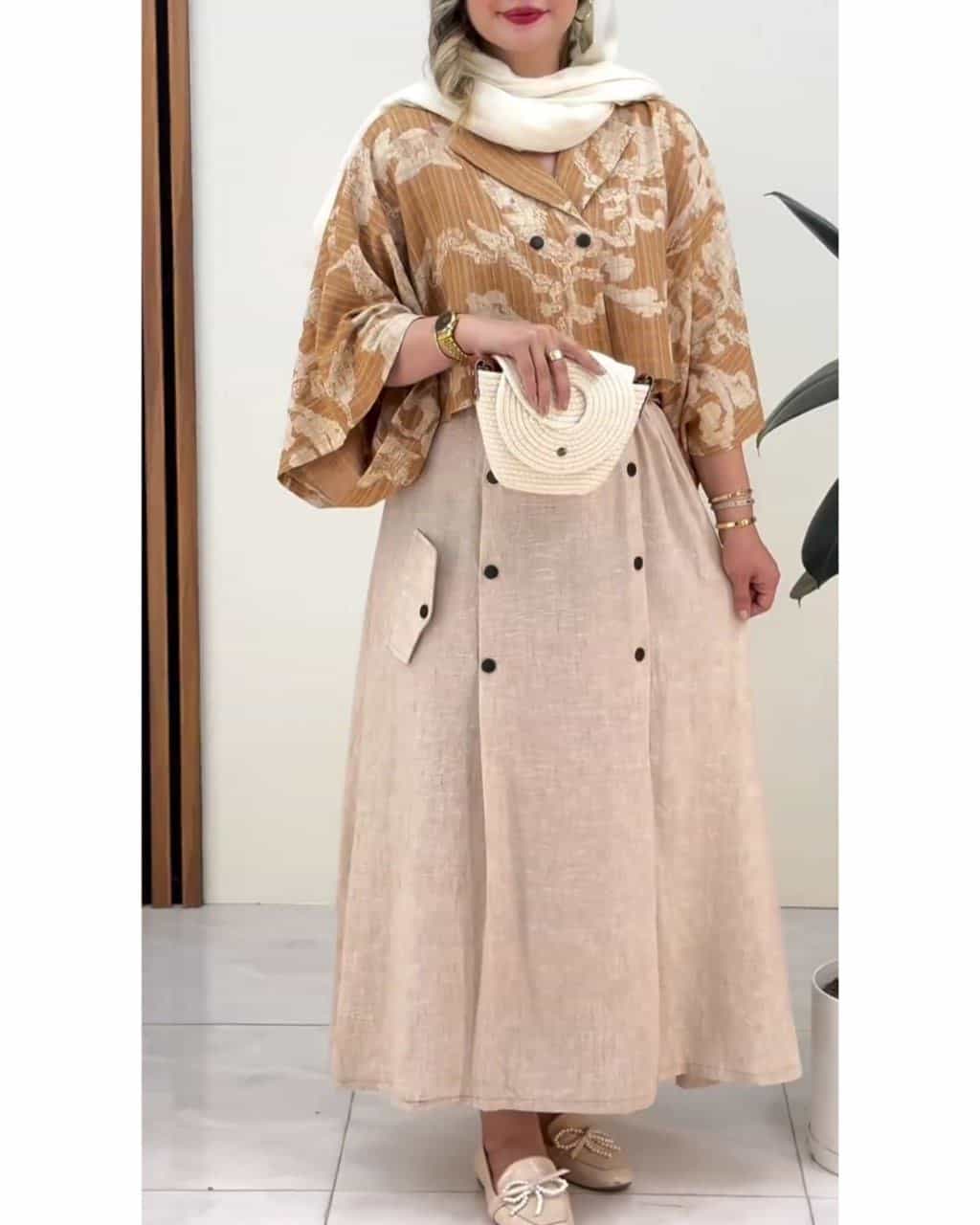 🔸 قد دامن: بین ۹۰ تا ۹۵ سانتی‌متر (فرم آزاد و راحت، مناسب برای استایل‌های متنوع)