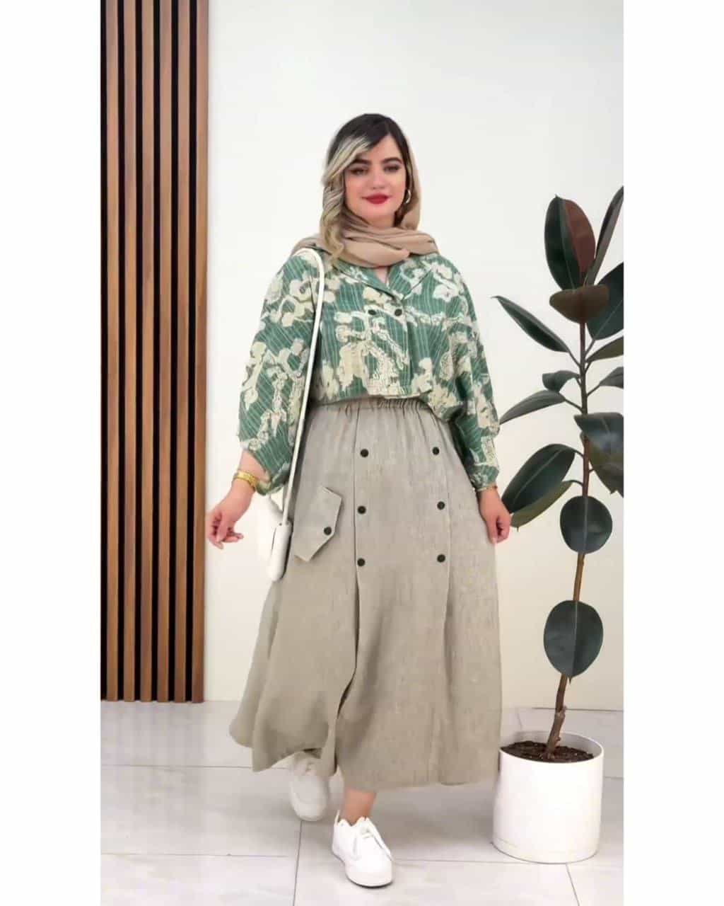 راحت و کاربردی: دامن دکمه‌دار با دوخت عالی که به راحتی تنخور زیبایی را ایجاد می‌کند