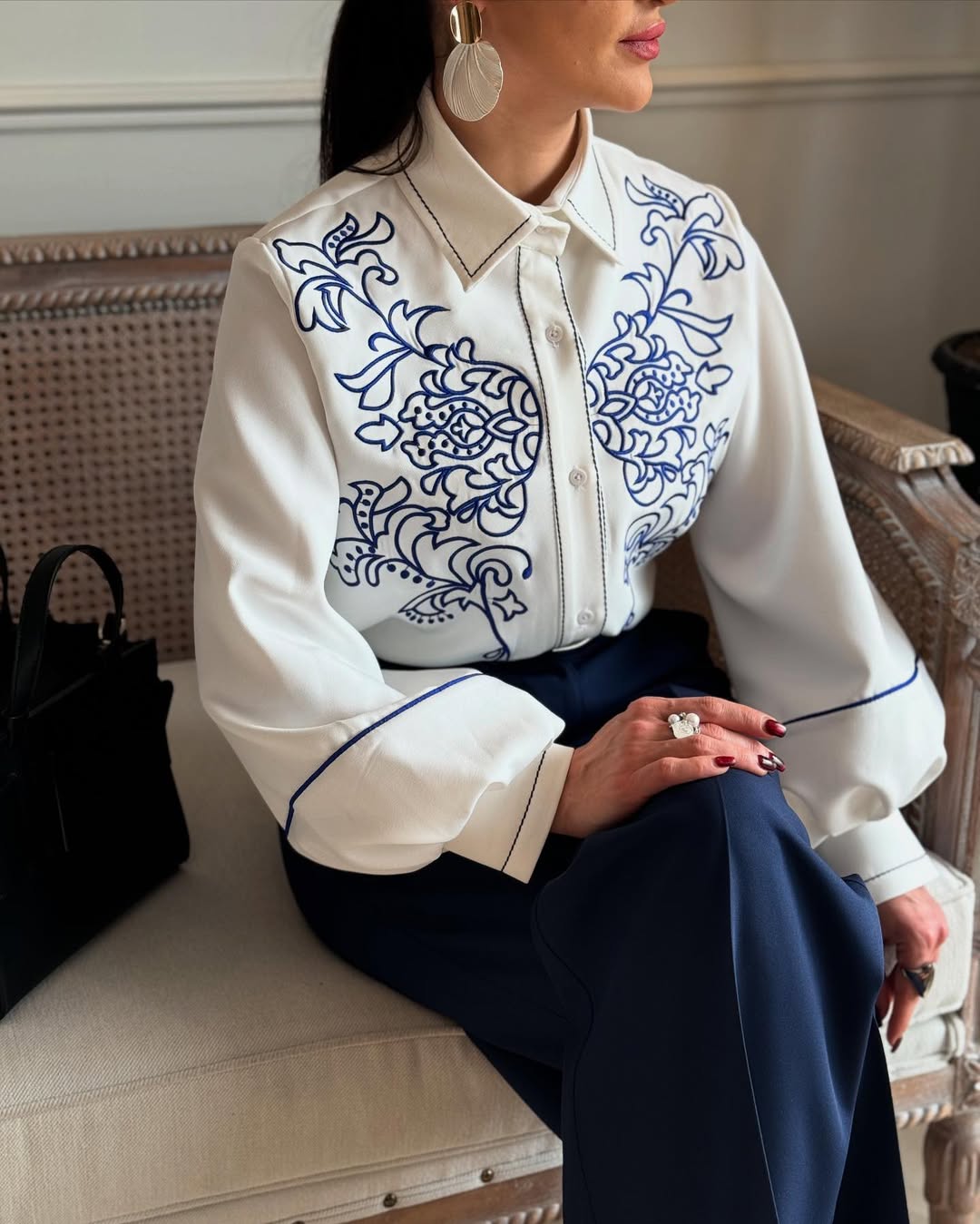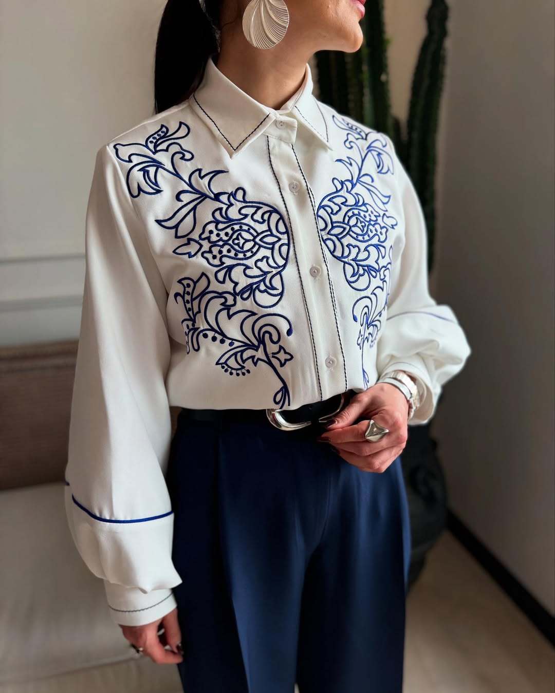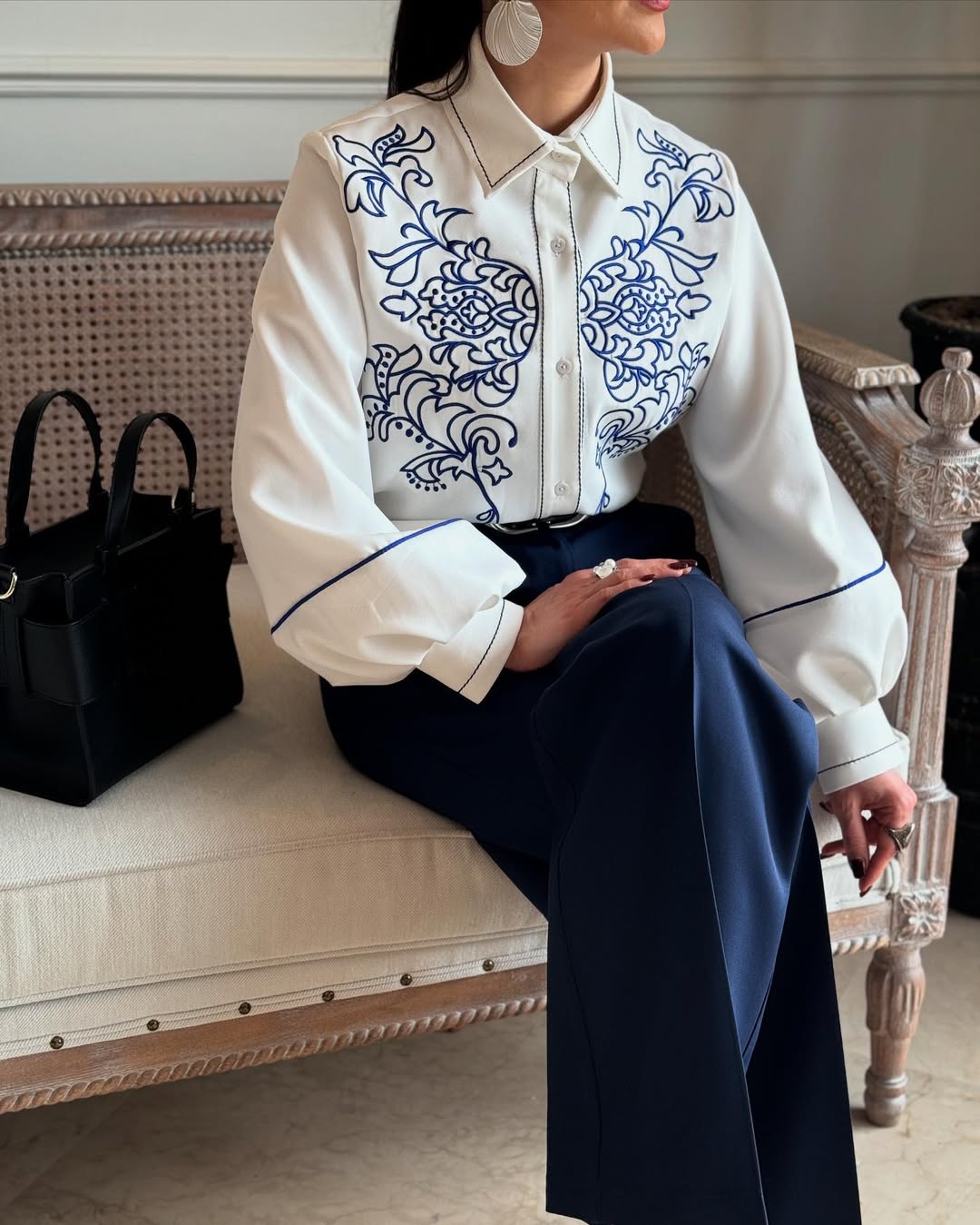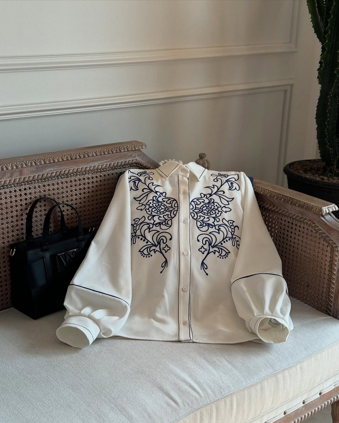 گلدوزیهای شیک و هنرمندانه روی شومیز که جلوهای خاص و چشمگیر به استایل شما میبخشد. 😍