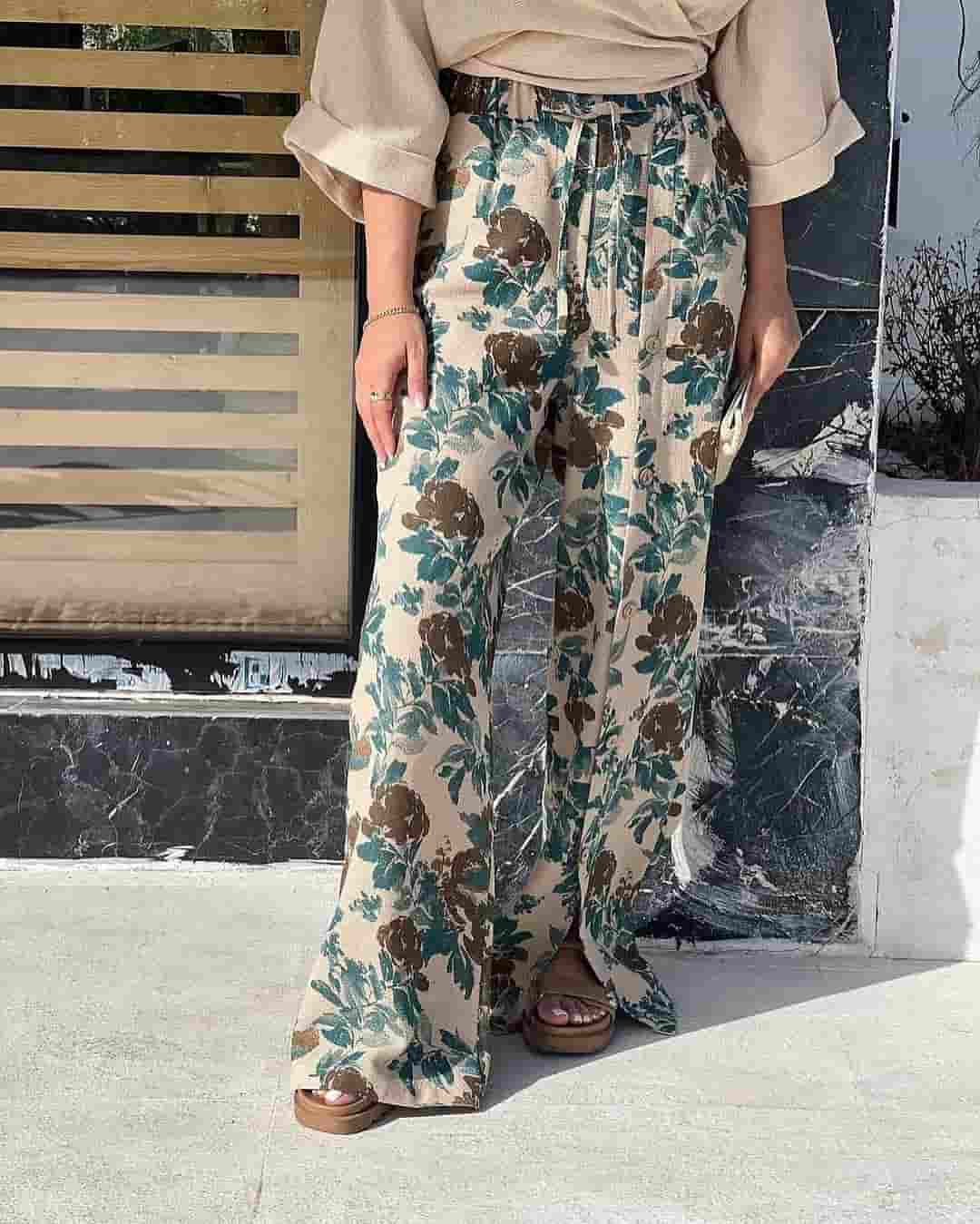 اگه دلت یه استایل خنک و راحت میخواد که توش نفس بکشی و هر جا رفتی همه بگن “وای چقدر شیک پوشیدی!”، دیگه نگرد… شومیز کنفی و شلوار طرحدار زنانه بابونه خودش اومده پیشت! 😍🌼