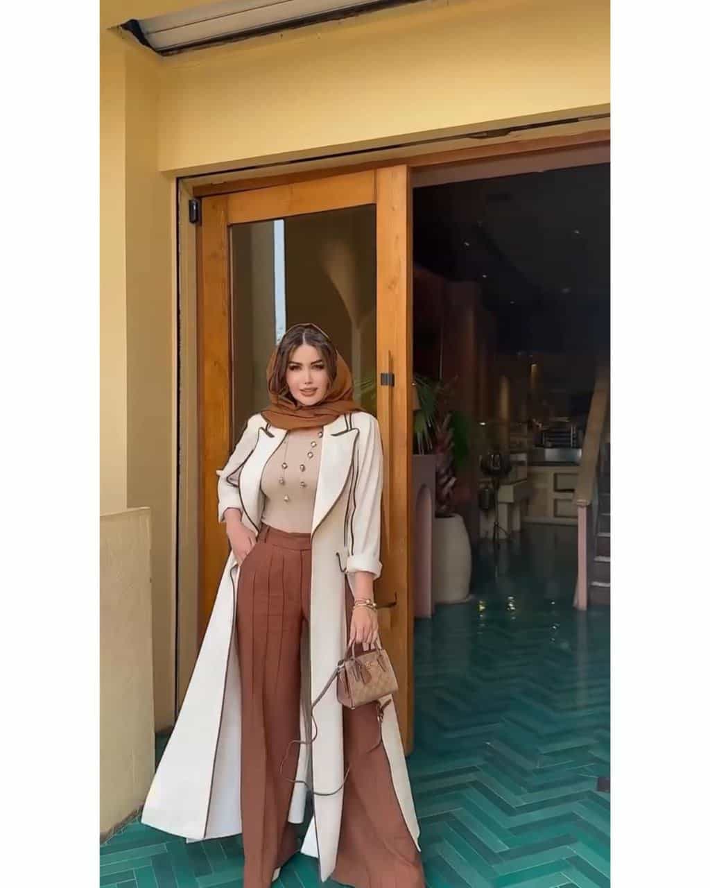 📏 قد مانتو حدود ۱۲۰ و قد شلوار حدود ۱۰۶ سانتیمتره، پس حسابی کشیده و شکیل وایمیسته، مخصوصاً وقتی با یه کیف دوشی خوشگل یا یه کفش لوفری ستش کنی 😍