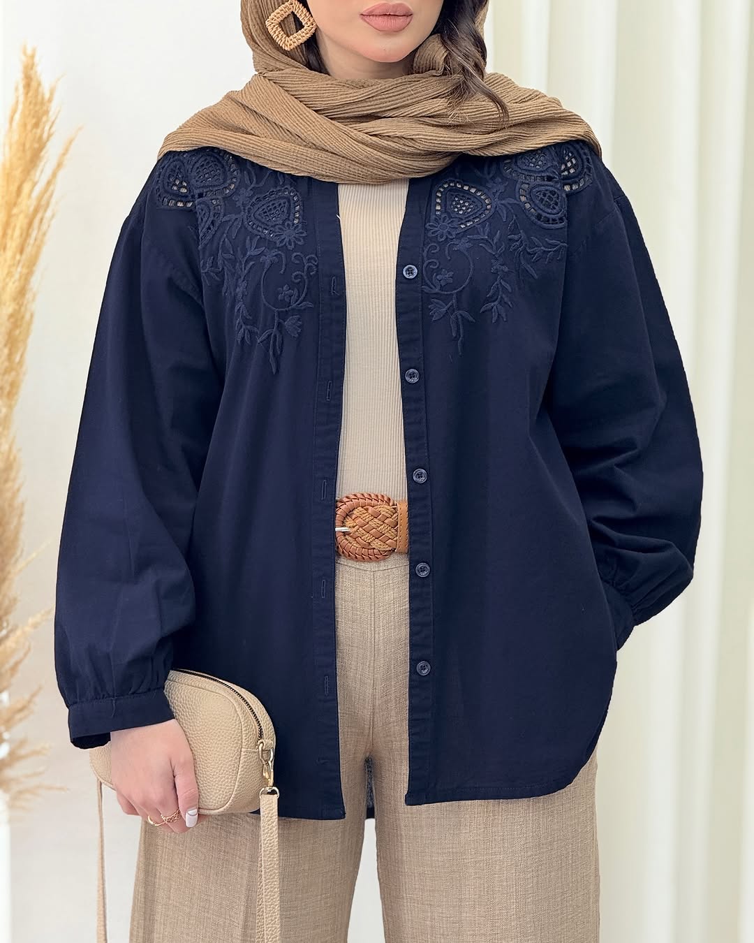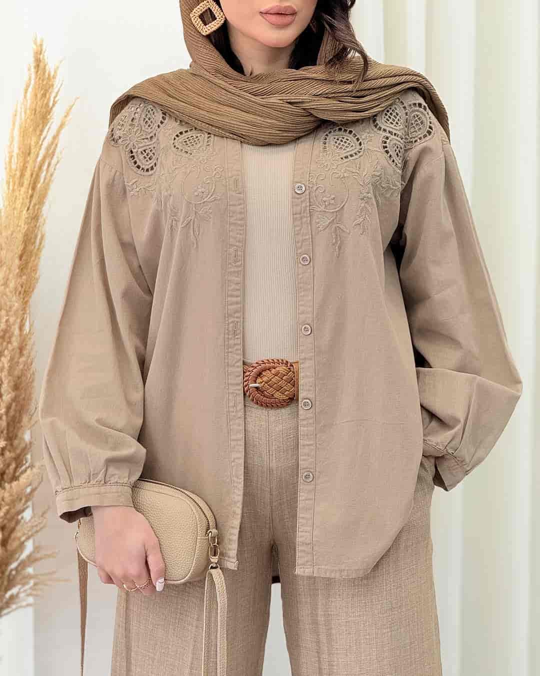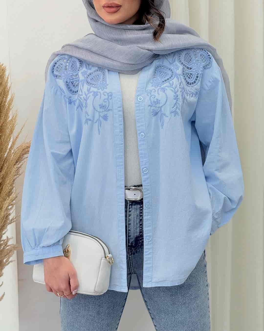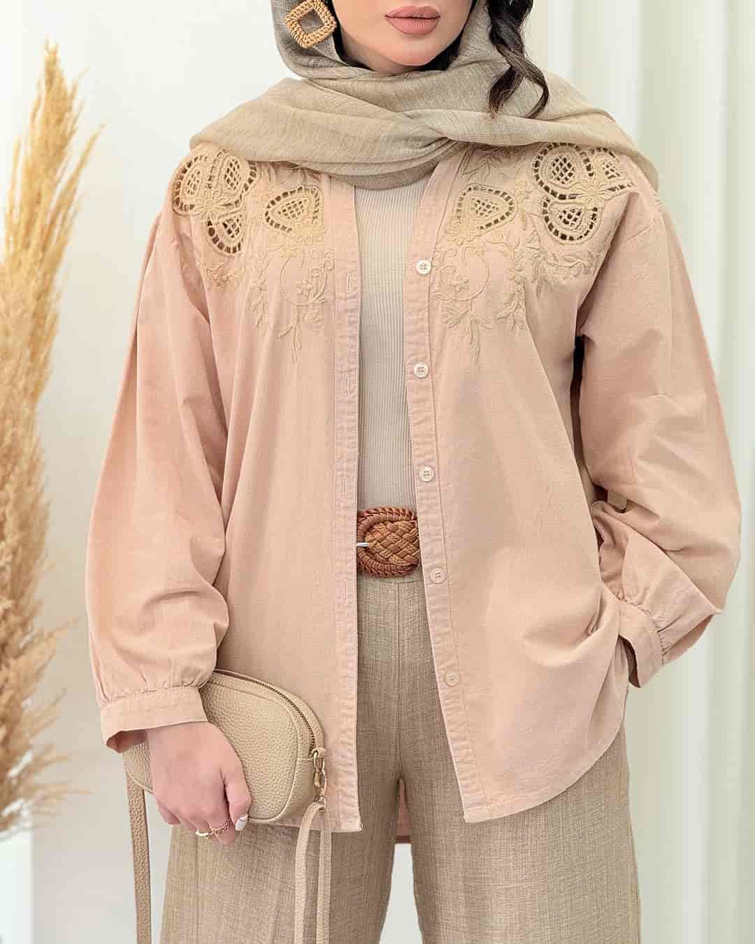 باید بگم… مانتو شومیزی زنانه گلدوزی فاطیما رو بپوش، جوابشو آماده کن 😉👗