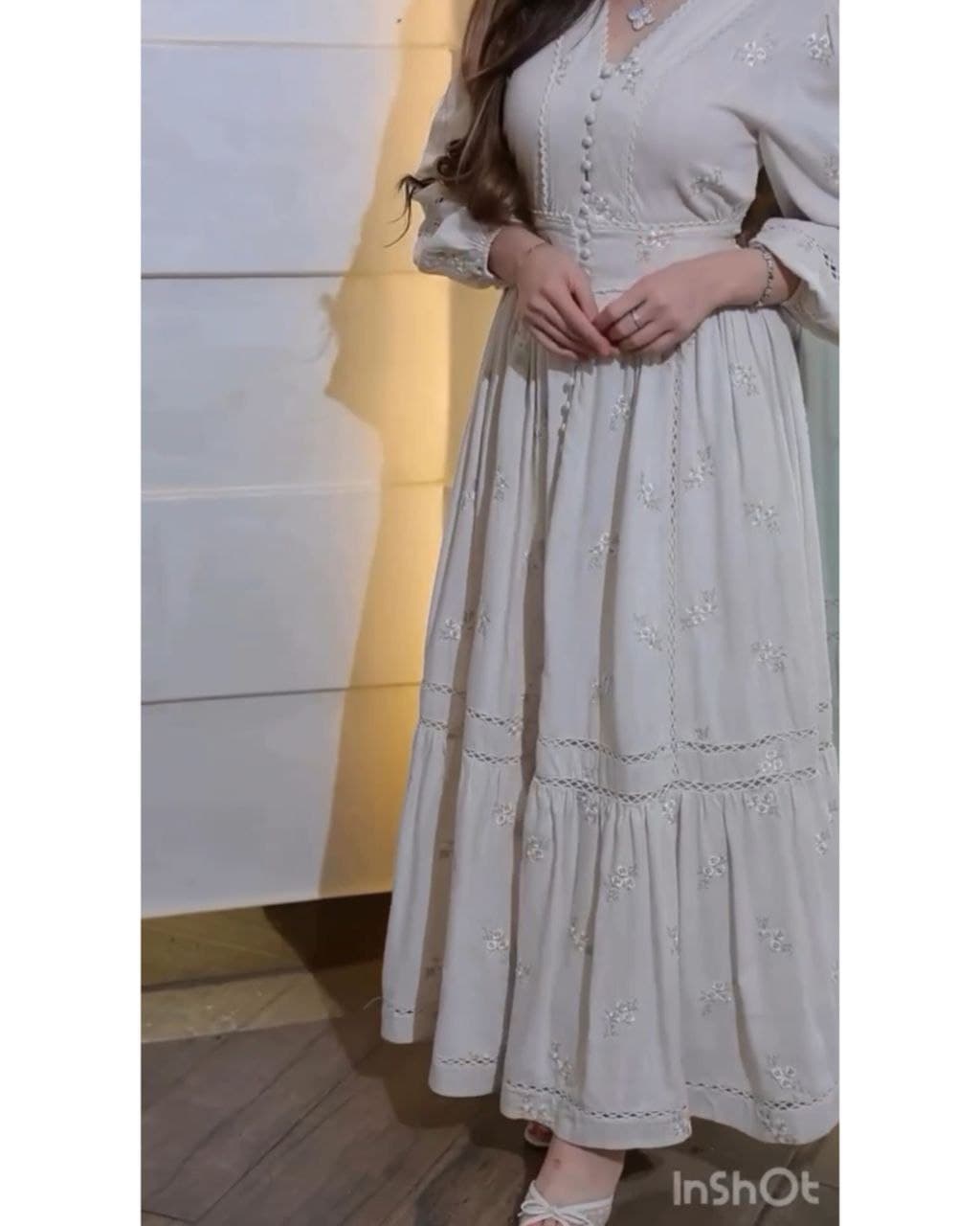 🌸 پیراهن خامه دوزی زنانه سفید نازنین 🌸