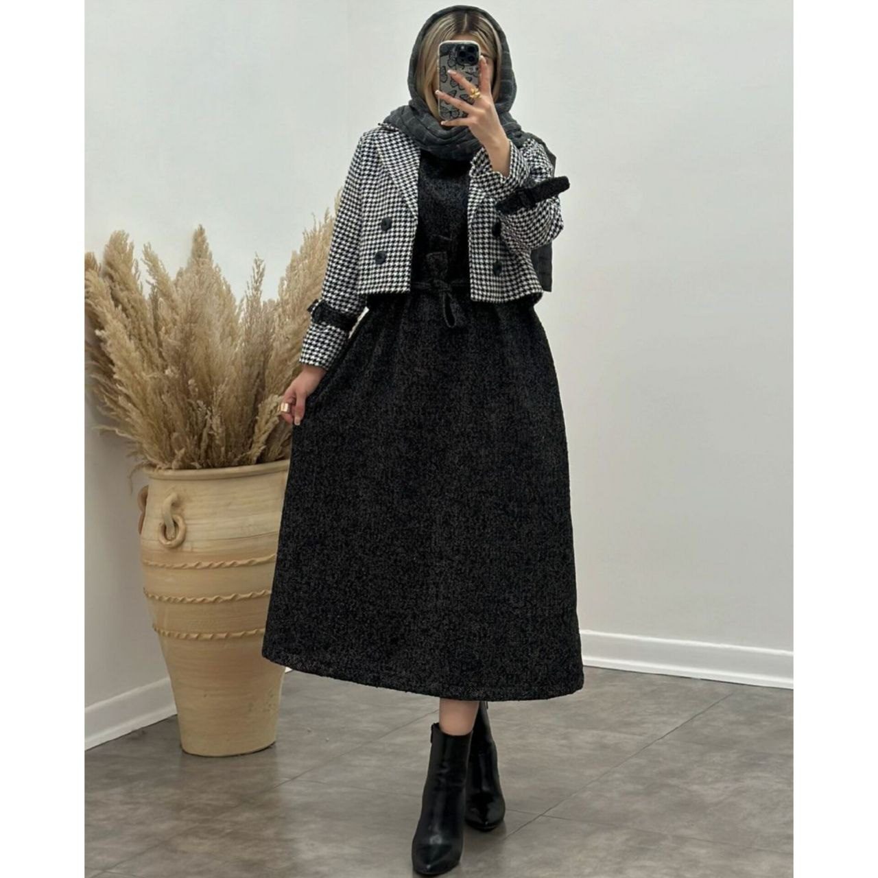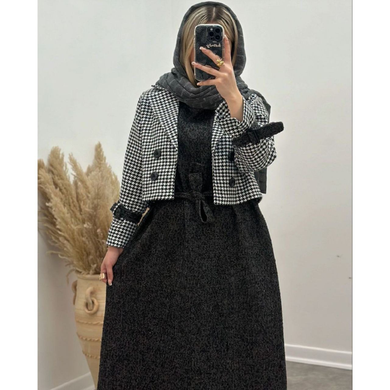 توییت یک پارچه مقاوم و گرم است که برای سارافونهای پاییزه و زمستانی بسیار مناسب است و حس لوکس بودن را به استایل شما اضافه میکند. - قد سارافون: حدود 130 سانتیمتر