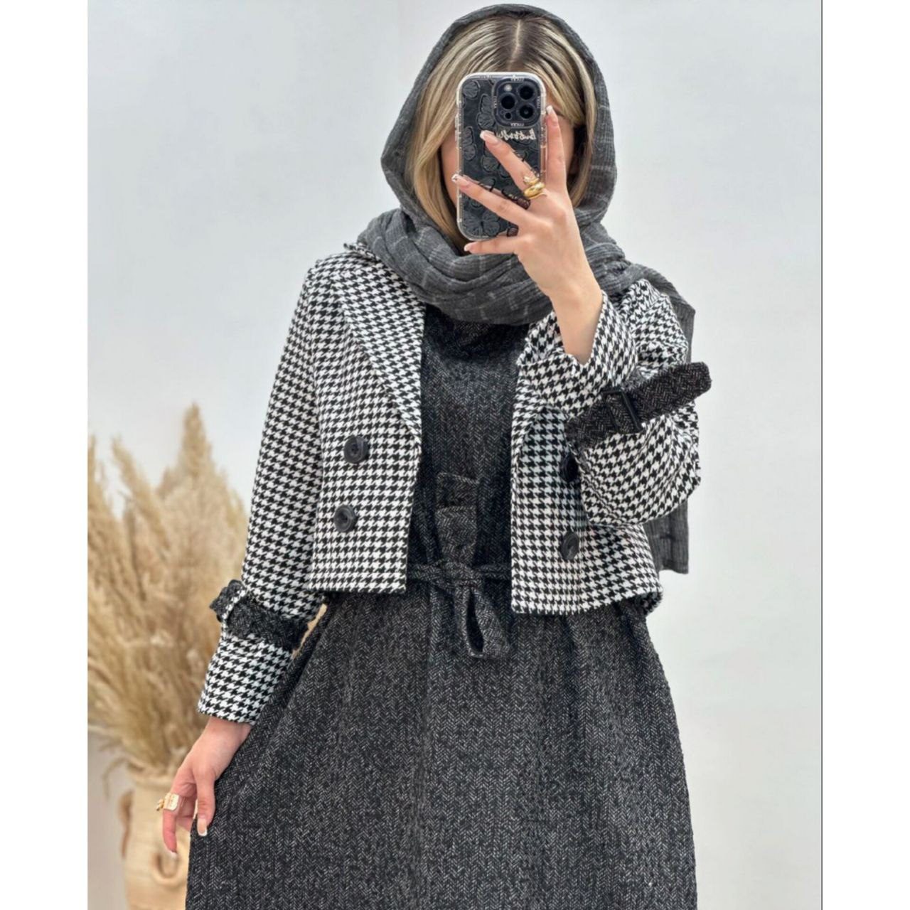 کت کوتاه، بهخوبی با سارافون ست شده و ظاهر نهایی شما را کامل میکند. - سایزبندی: فری سایز (مناسب برای سایزهای 36 تا 44)