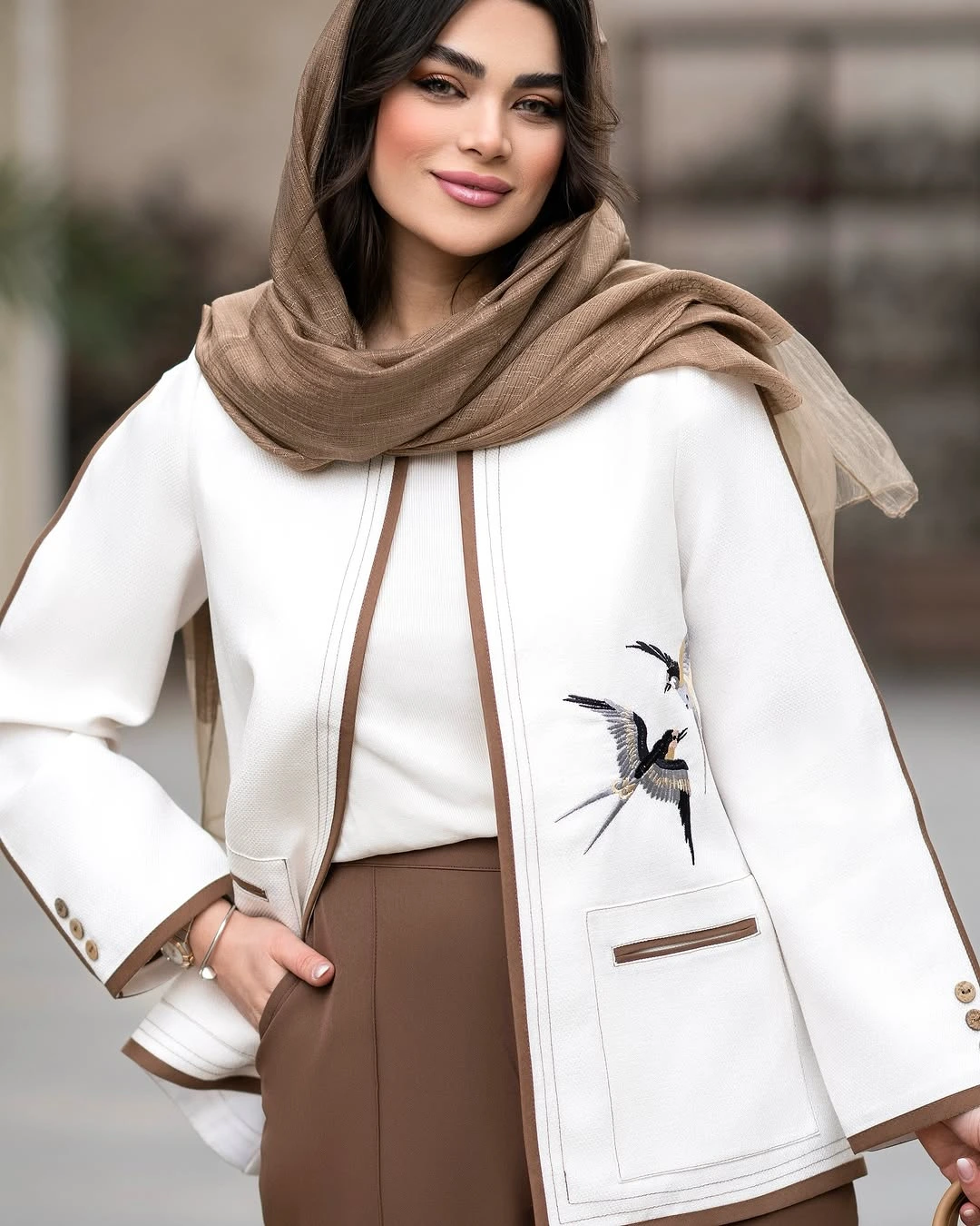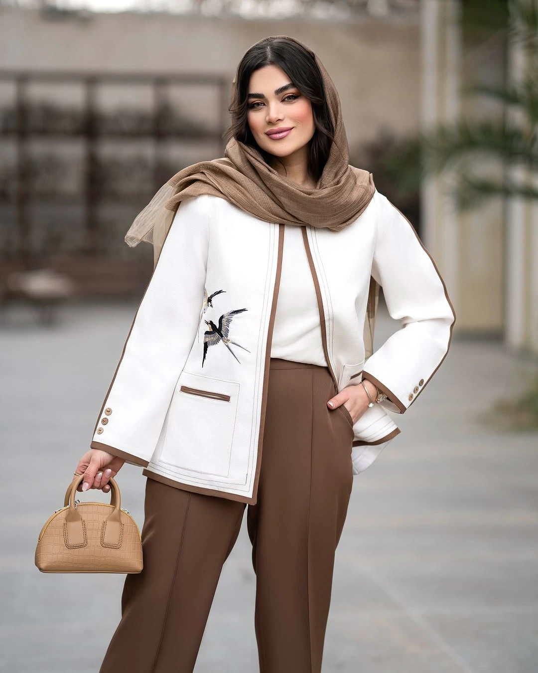 ✨ کت شلوار سفید زنانه مجلسی طاووس؛ ترکیبی از شیکپوشی و ترند سال! 😍