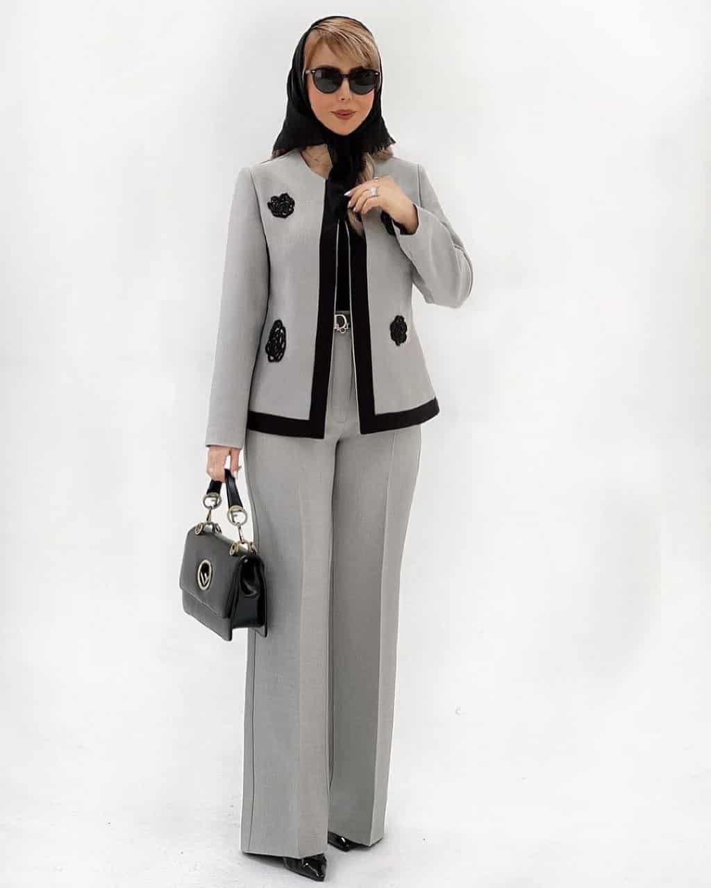 ✨ کت شلوار مجلسی زنانه طوسی گل دار ایلونا