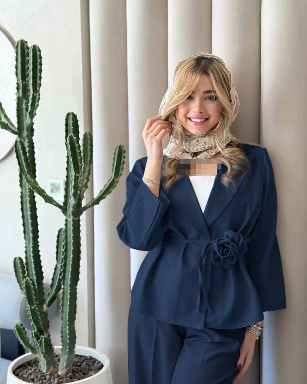 مدل: کت شلوار کوتاه مینیمال دخترانه، با طراحی خاص و کمربند گل‌دار که جلوه‌ای منحصر‌به‌فرد به استایل شما می‌بخشد.